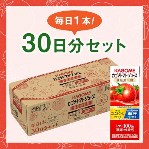 カゴメ トマトジュース 食塩無添加 200ml紙パック×30本(毎日1本30日分 機能性表示食品 リコピン GABA 血圧 善玉コレステロール)【Amazon.co.jp限定】