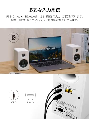 「VGP2025金賞&コスパ大賞」Edifier M60 マルチメディアスピーカー 66W Bluetooth 5.3 ハイレゾワイヤレス コンパクトなデザイン 専用アプリ スタンド付き USB-C/AUX入力 MDF製 黒
