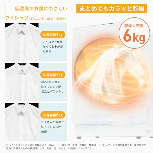 ハイセンス ドラム式 洗濯乾燥機 洗濯10kg 乾燥6kg 洗剤自動投入 コンパクト 大容量 自動槽洗浄 温水洗浄 60℃除菌コース スリム HWF-KD100SL-W ホワイト