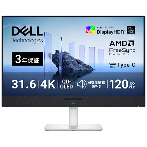 Amazonで大注目の「Dell S3225QC 31.6インチ 有機EL モニター(無輝点3年保証/4K/OLED,抗反射/USB-Cx1,HDMIx1/内蔵スピーカー/120Hz/0.03ms/AMD FreeSync Premium Pro/DisplayHDR True Black 400/DCI-P3 99%/高さ調整,傾き)」が、現在 22%の大幅値引き中です。現在の価格は¥100,980。ユーザー評価も星4.3(304件)と極めて高く、信頼性の高いアイテムです。「Dell」の製品として、パソコン・周辺機器 › ディスプレイカテゴリー内でもトップクラスのお買い得品です。