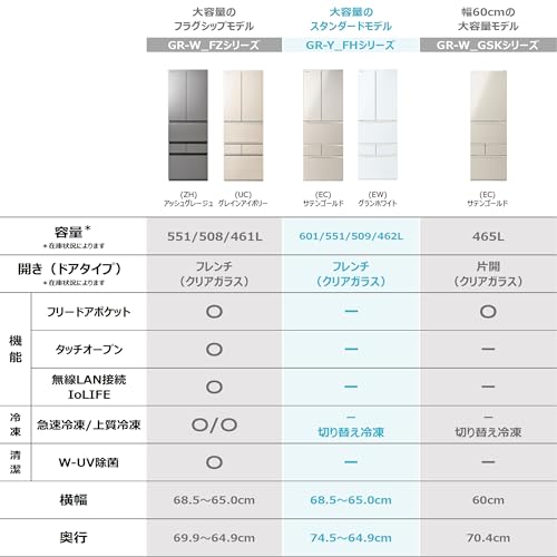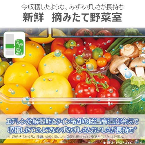 TOSHIBA(東芝) 冷蔵庫 幅65.0㎝ 509L フレンチドア GR-Y510FH(EC) サテンゴールド 野菜室がまんなか 大容量 自動製氷 使い勝手 両開きタイプ ガラスドア