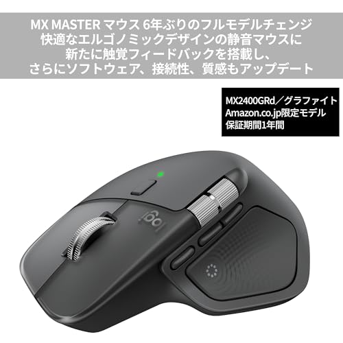 【Amazon.co.jp限定】 ロジクール MX MASTER 4 アドバンスド ワイヤレス マウス 触覚フィードバック 静音 MX2400GRd Logi Bolt Bluetooth Unifying非対応 8000dpi 高速スクロールホイール USB-C 充電式 無線 MX2400 グラファイト 国内正規品 ※Amazon.co.jp限定 壁紙ダウンロード付き
