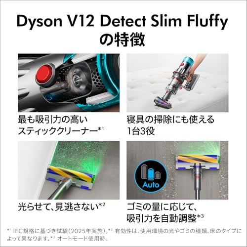 Dyson(ダイソン) 掃除機 コードレス Dyson V12 Detect Slim Fluffy (SV46 FF AM) スティック ハンディクリーナー サイクロン【Amazon.co.jp限定】【光らせて、見逃さない】